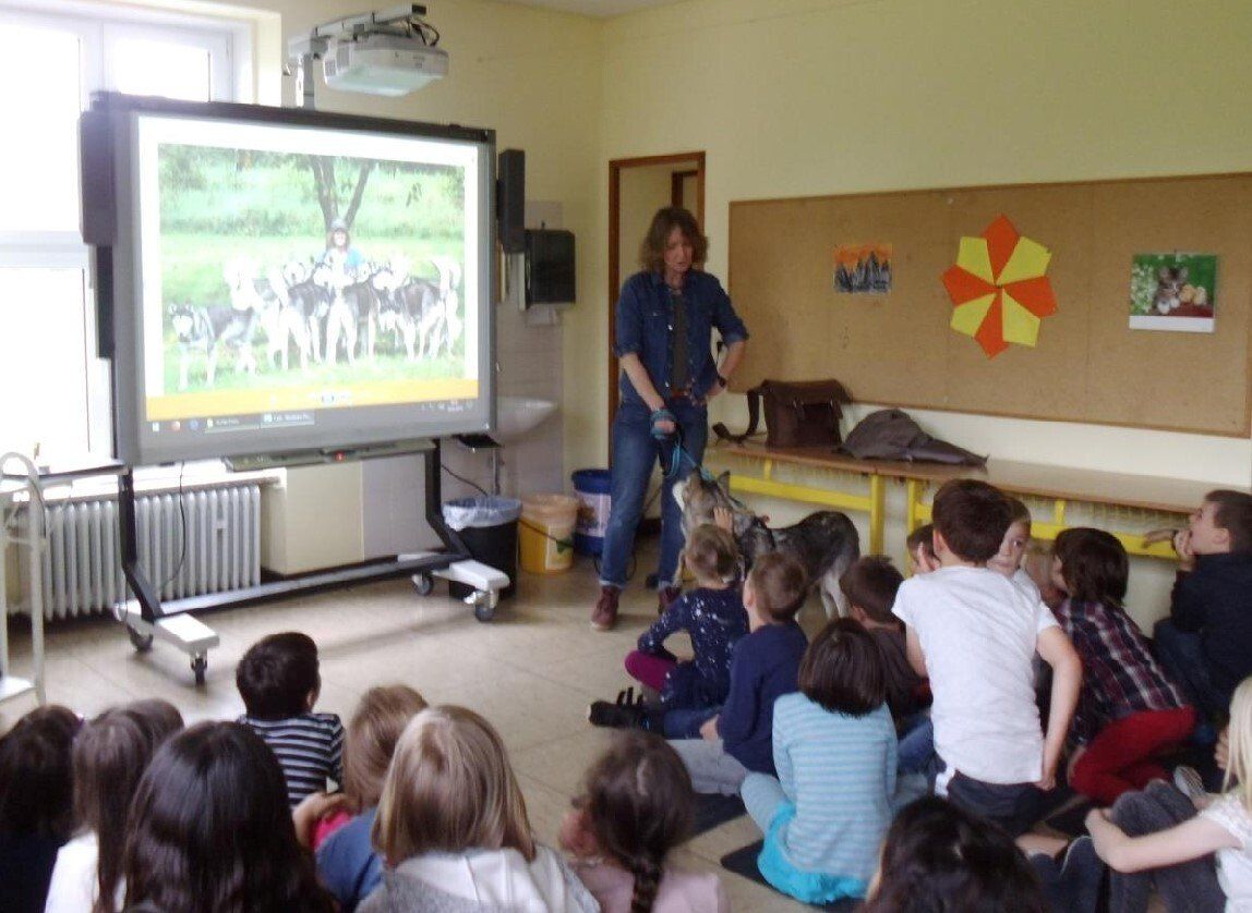 Zu Lesungen aus „Ein Husky-Mädchen namens Abby“ begleiten mich nach Absprache ein oder zwei meiner Hunde.